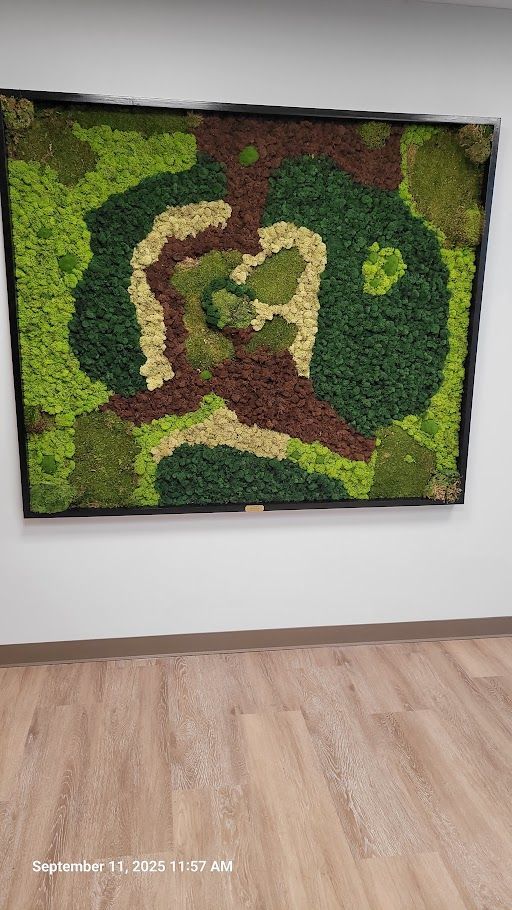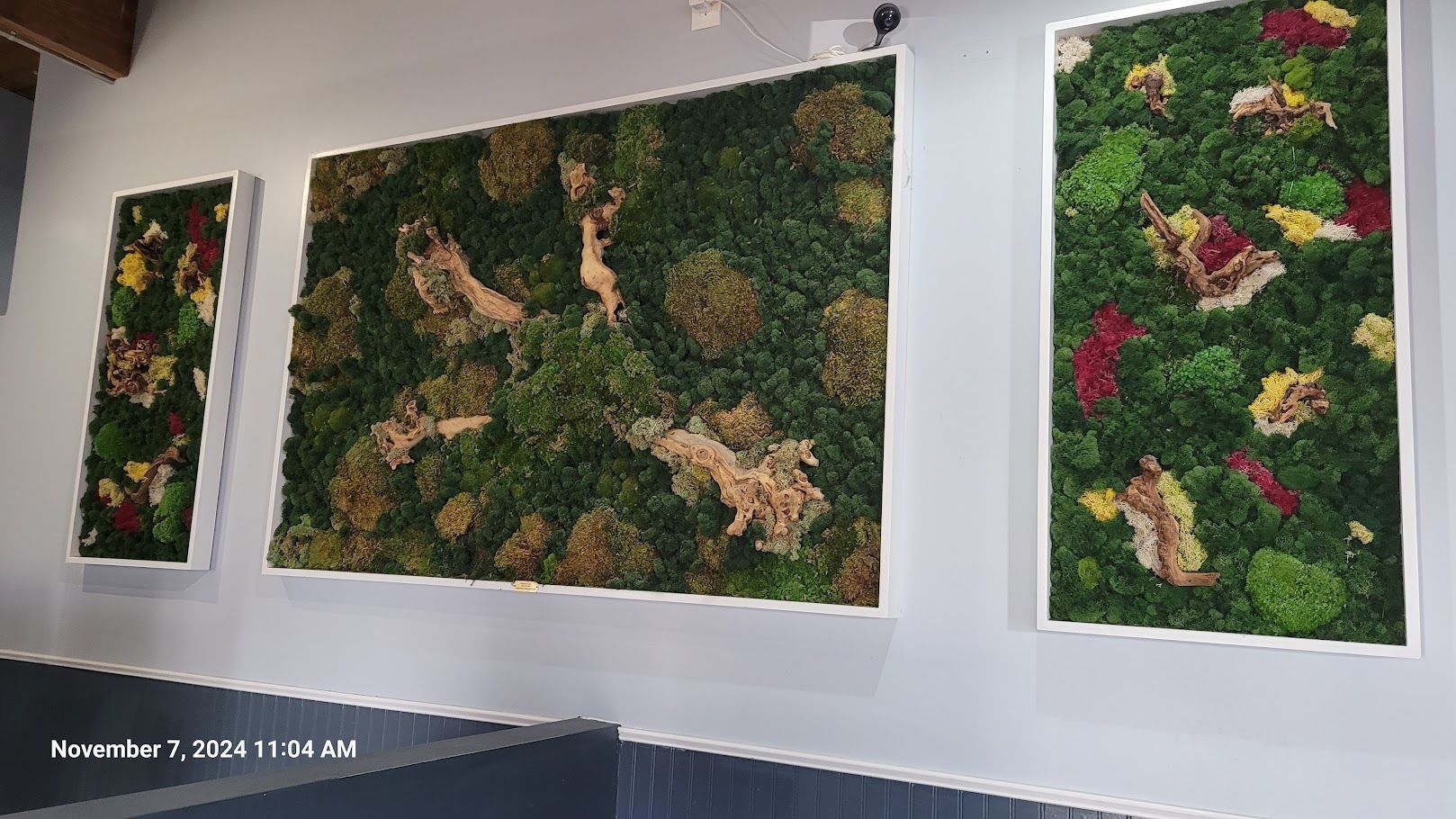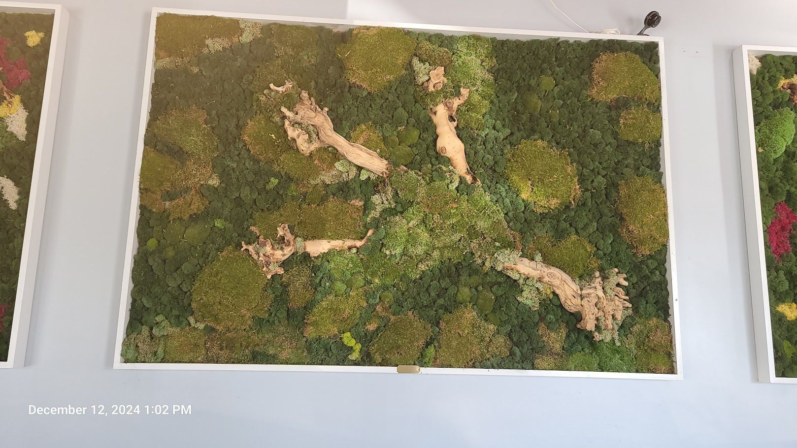 moss wall installation to match the aesthetic of the rest of your space. Whether you want a geometric design or want the shades of green to run wild, we can build the perfect framework for your preserved moss to rest in. Add one of our moss walls to your office and enjoy the natural beauty and various shades of green throughout your moss wall.